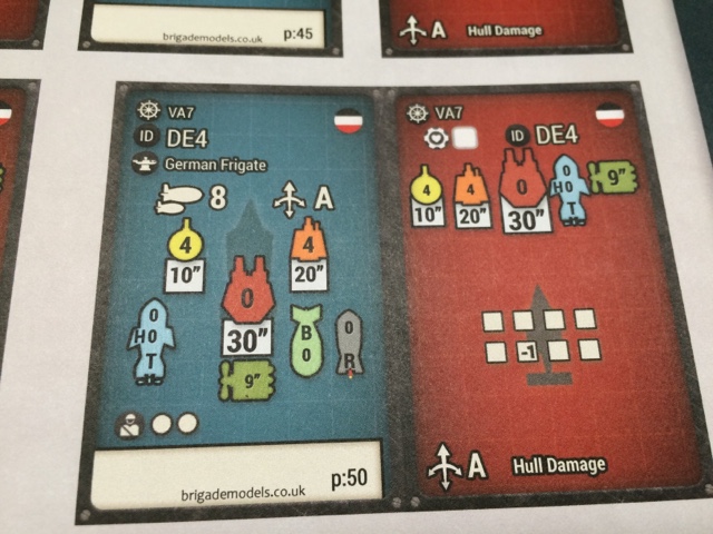 Each ship will have a ship card that will provide info for that ship and allow you to track damage taken. The ship card tells you the speed of the ship, the number of guns, bombs, and torpedoes, its turning rate, and all the necessary info you will need during the game.